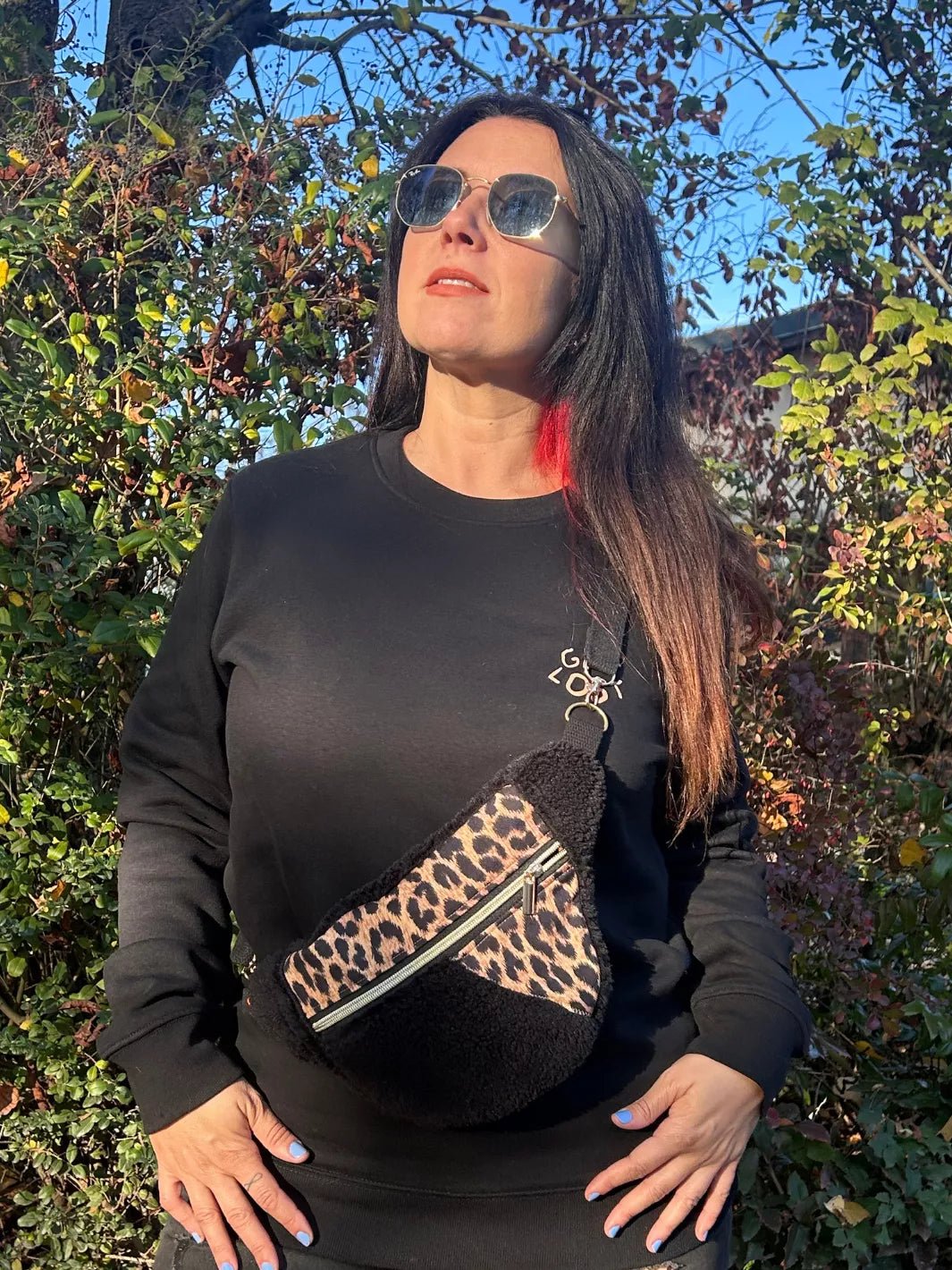 TWO-TONE TEDDY BLACK-LEOPARD BUM BAG